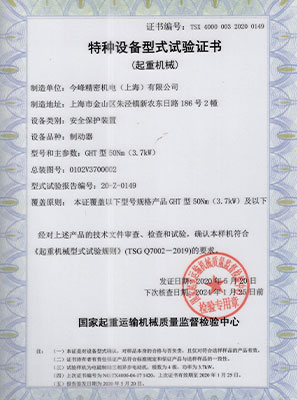 特種設(shè)備型式試驗(yàn)證書