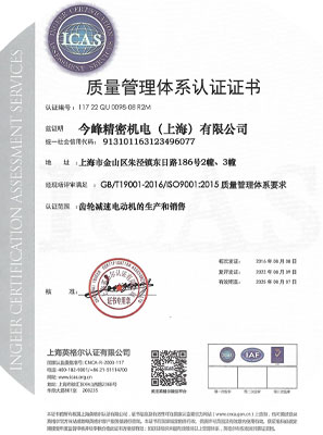 質(zhì)量管理體系認(rèn)證證書