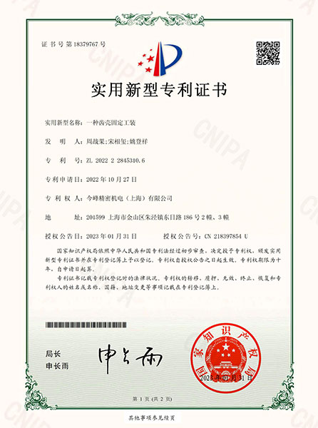 實(shí)用新型專利證書